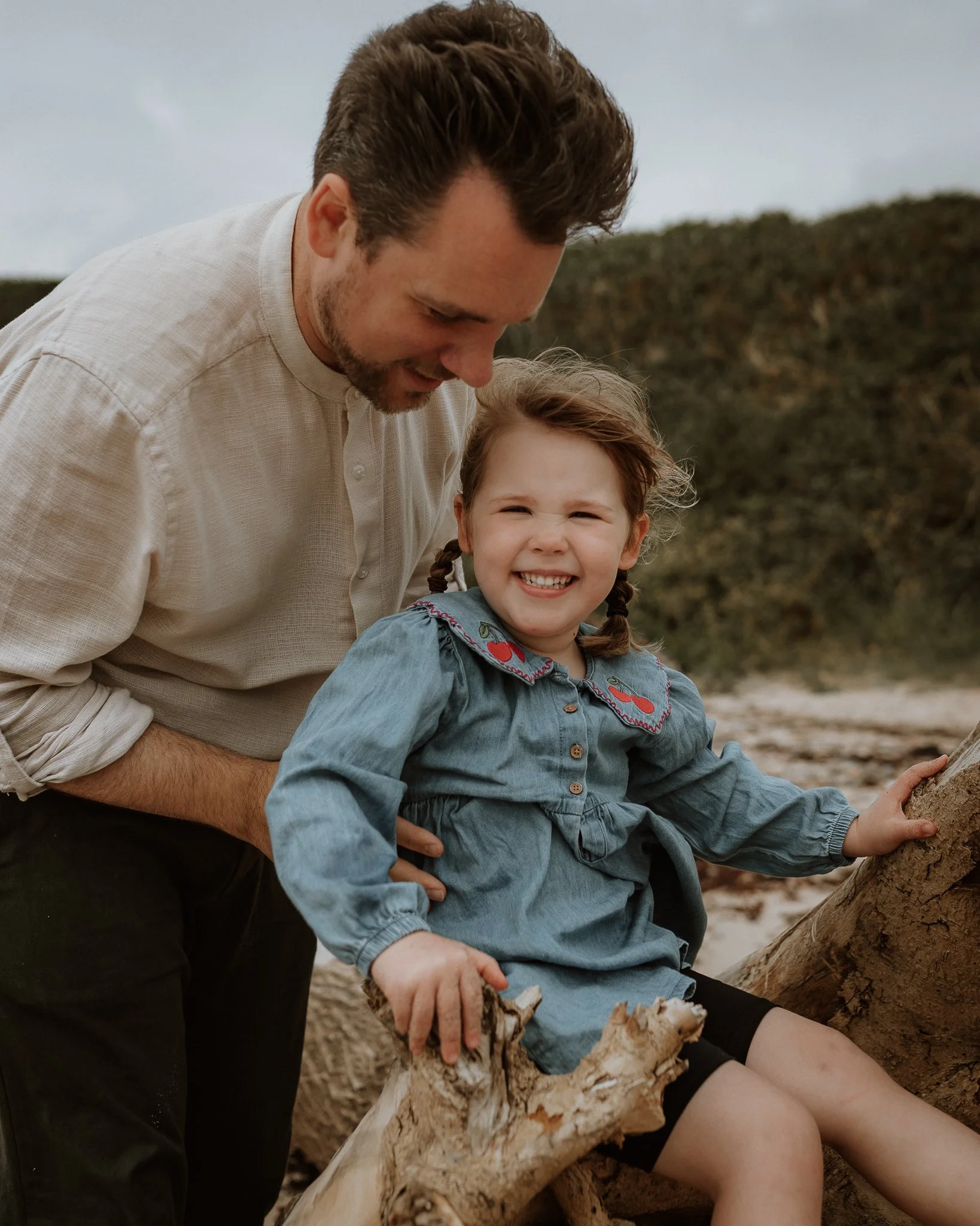 Dad and Hattie climbing on my favourite log at Half Moon Bay ~ Morganna Monk Photography