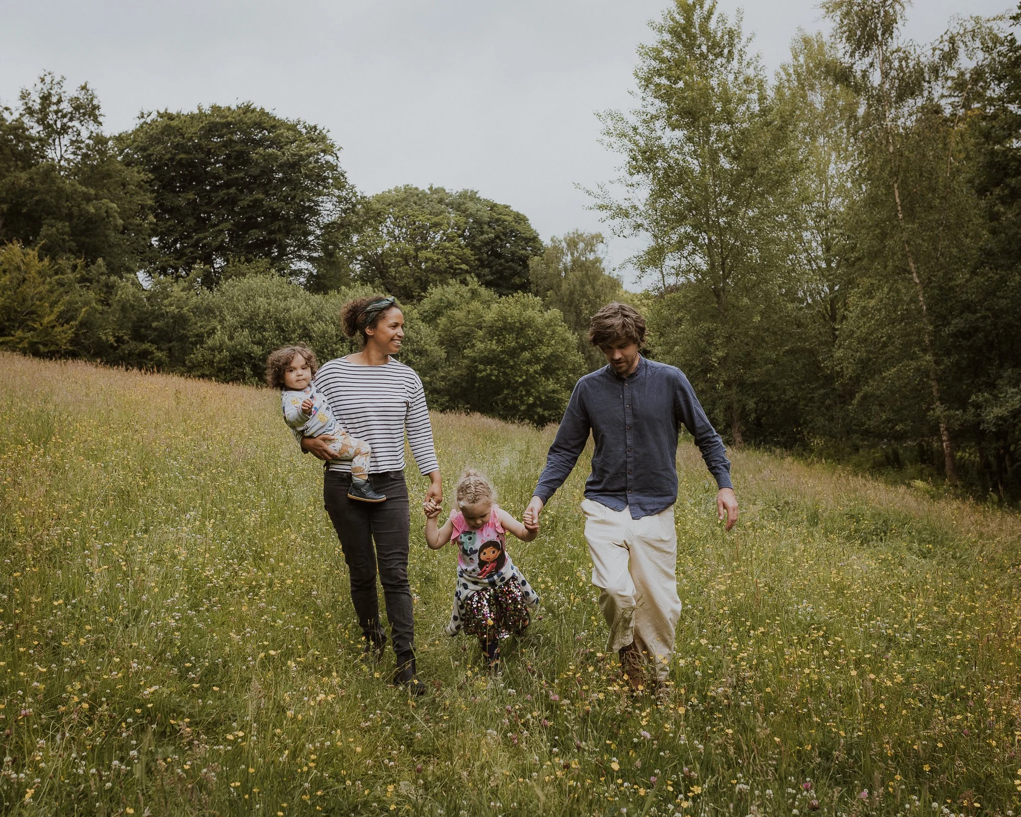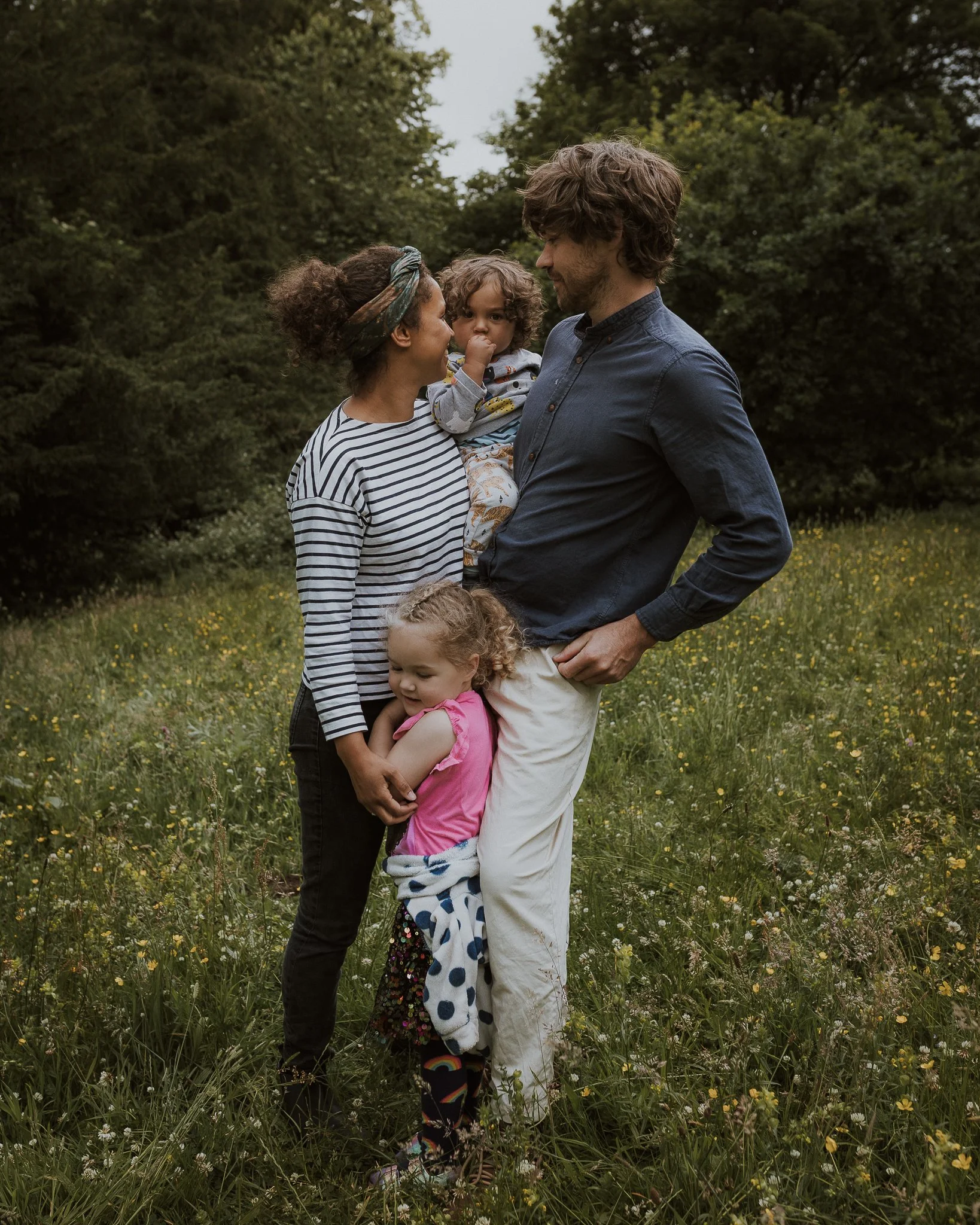 Bryony & Hugh with their children amongst the wildflowers